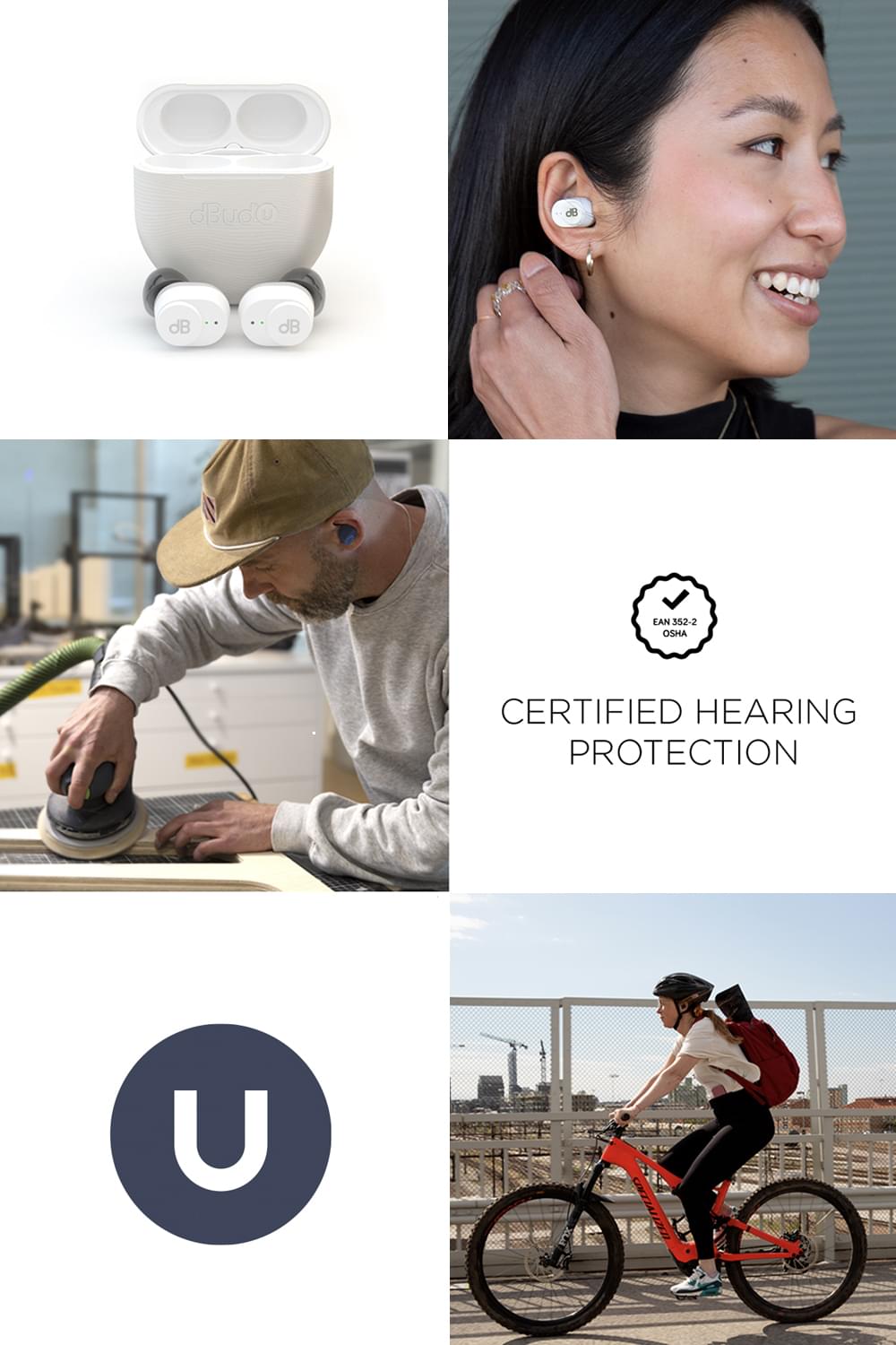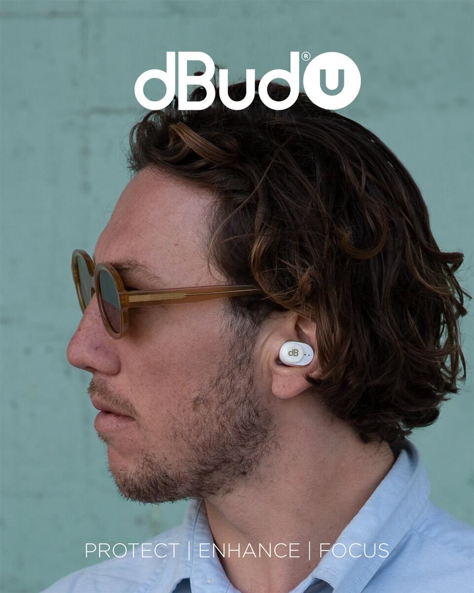 Combining the best from true wireless earbuds, hearing protection and hearing enhancement technology, dBud U is one device to protect your ears, enhance your hearing and help you focus in a noisy world.